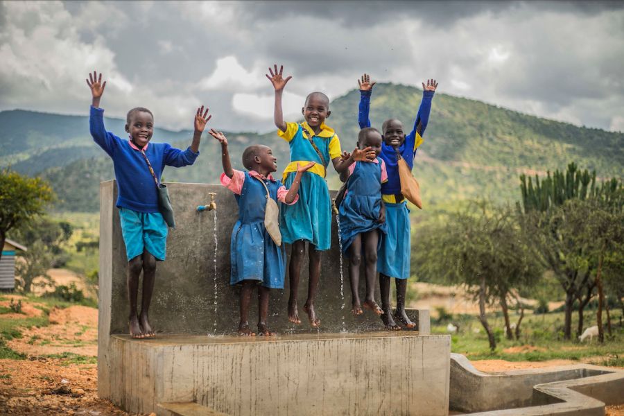 Girls in Tirken, Kenya. Mahan visited this community for the initial assessment and got to know the community, culture, and technical challenges for this project as Water Mission’s Kenyan team developed a solution. “Seeing those smiling faces,” Mahan says, “and knowing those girls will get to spend more time in school and less time fetching water is so encouraging.”[/caption]