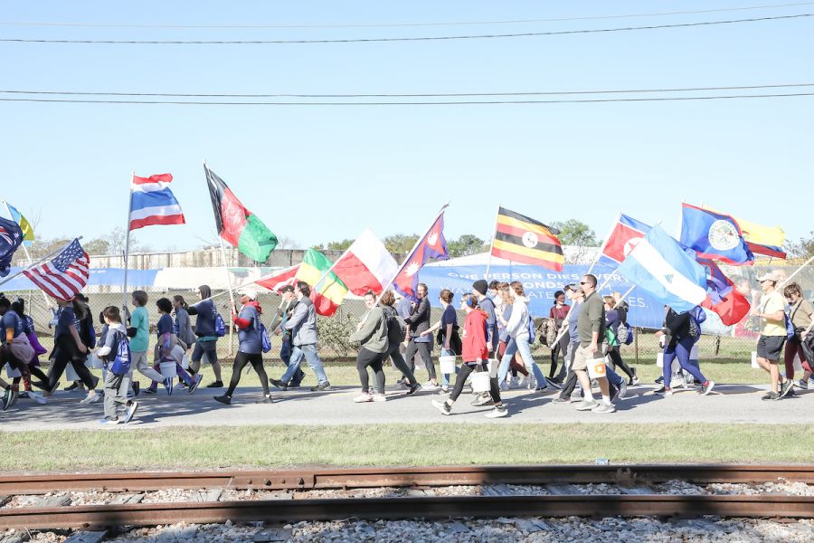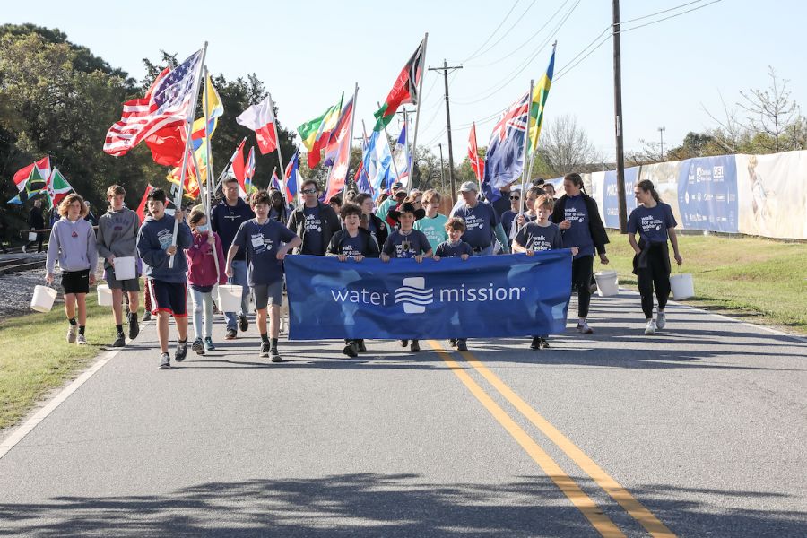 The Walk for Water was led by walkers carrying flags representing the 57 countries where Water Mission has served.