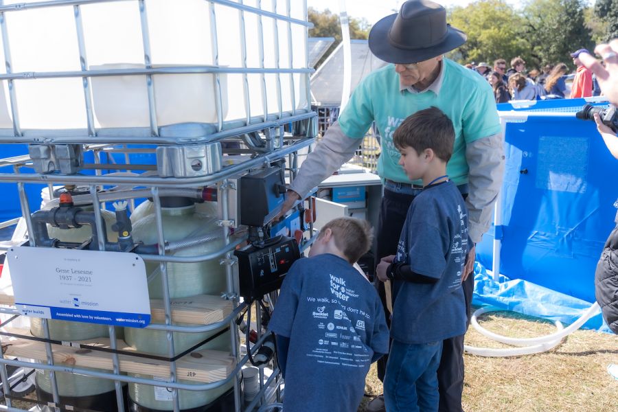 Volunteers shared how the Living Water Treatment System treats water to make it safe for kids and families in remote communities, refugee camps, and disaster areas.