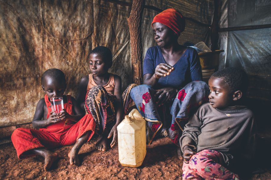 Water is PEACE for refugees like Oreni living in the Nyarugusu Refugee Camp in Tanzania. Oreni and her children had to leave everything and flee their home in Burundi under the threat of violence and war. They were very sick from the water in the camp but their lives changed when we installed a safe water solution near their home.
