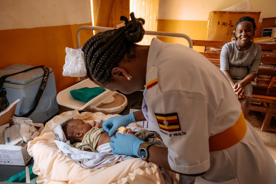 Nurse Damalie has witnessed many pregnant mothers develop severe infections due to the lack of safe water. Here, she tends to Wisdom Christian, newborn son of Doreen.