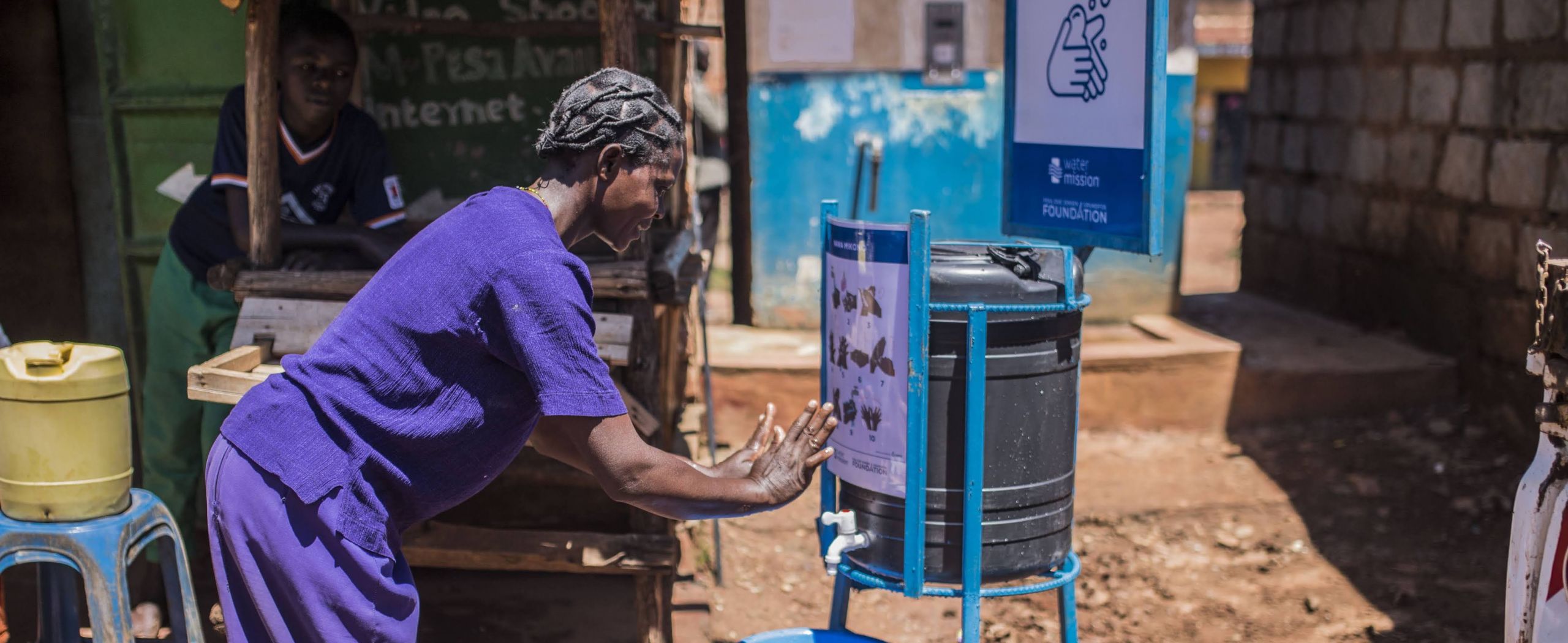 A hospital staff member uses a handwashing station installed by Water Mission's Kenya program.[/caption]
