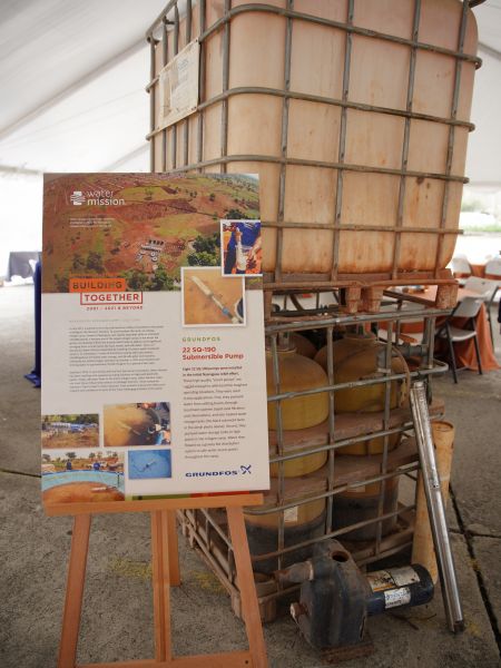 Some of the original safe water treatment equipment from the Nyarugusu relief effort were displayed with honor at Water Mission's Strategic Partners Event in March 2021.[/caption]