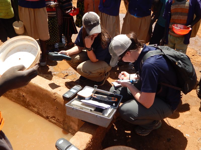 Taylor Edmonds and Jessica Mahan test water in a community in Kenya[/caption]