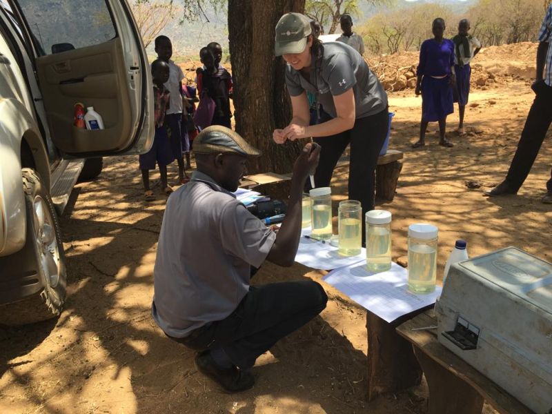 Taylor and Water Mission Kenya staff determine water quality[/caption]