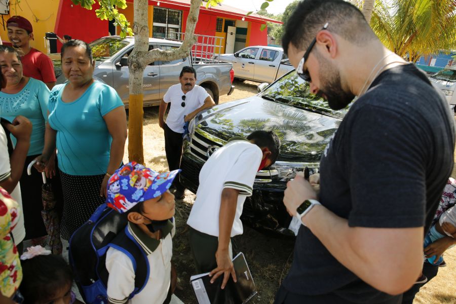 Retired MLB pitcher, Jaime Garcia, signs a baseball for an eager young fan near Tapachula, Mexico, after spending time teaching baseball fundamentals and sharing about God’s love.[/caption]