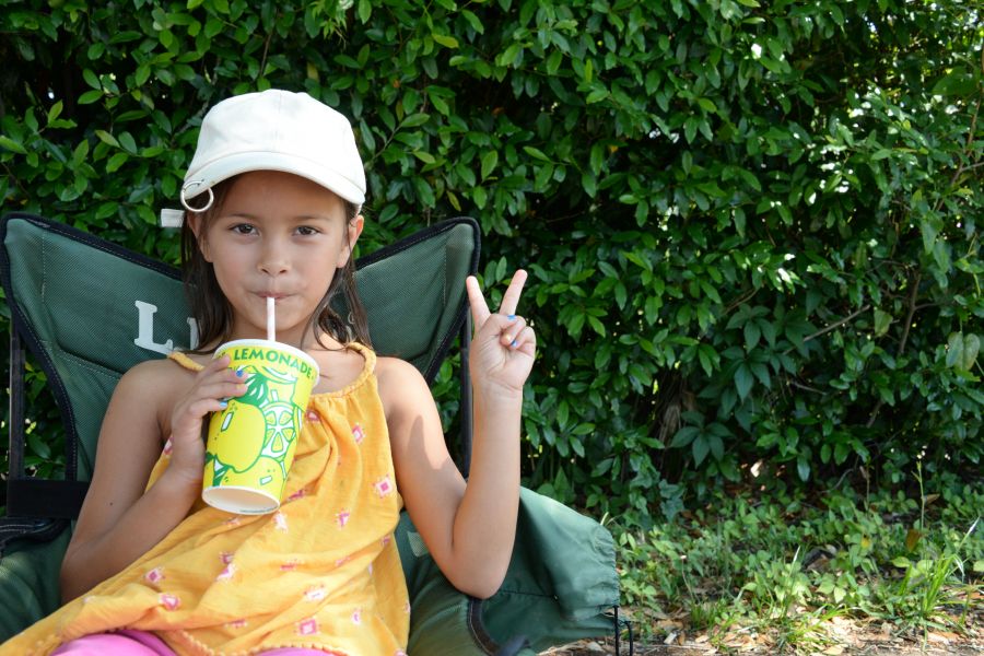 After a successful day manning her stand, Cinelle Barnes's daughter enjoys a cup of lemonade[/caption]