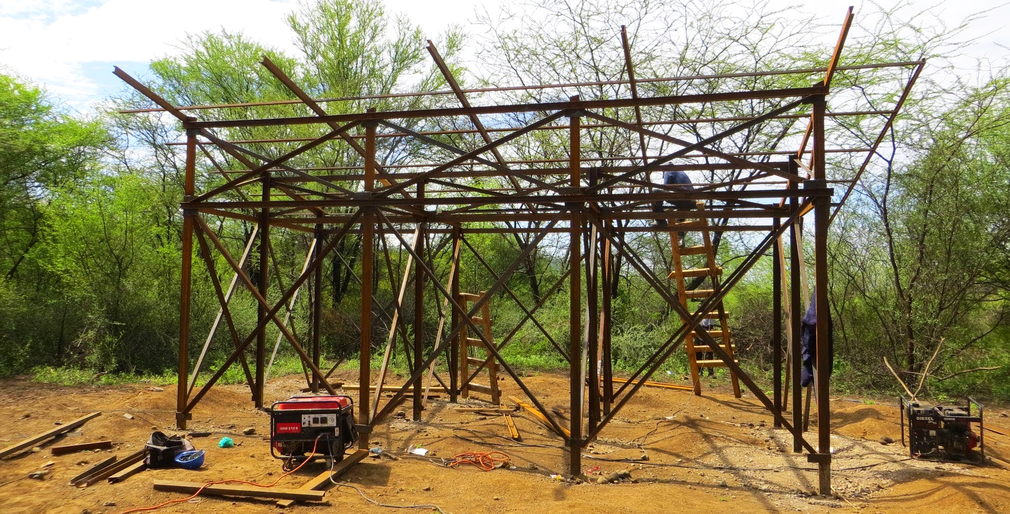 Since we planned to install the largest solar pumping system completed to date, new drawings and technical knowledge had to be developed. One of the new designs was a large solar racking frame to hold the 8.6 kW of solar panels. The design had to factor in the type of metal framing available in Kenya and the skill level of the local welders to successfully complete the structure. I joined in the project to train Water Missions Kenya staff on installing and programming the inverter, which took the DC solar power and converted it to AC pump power.