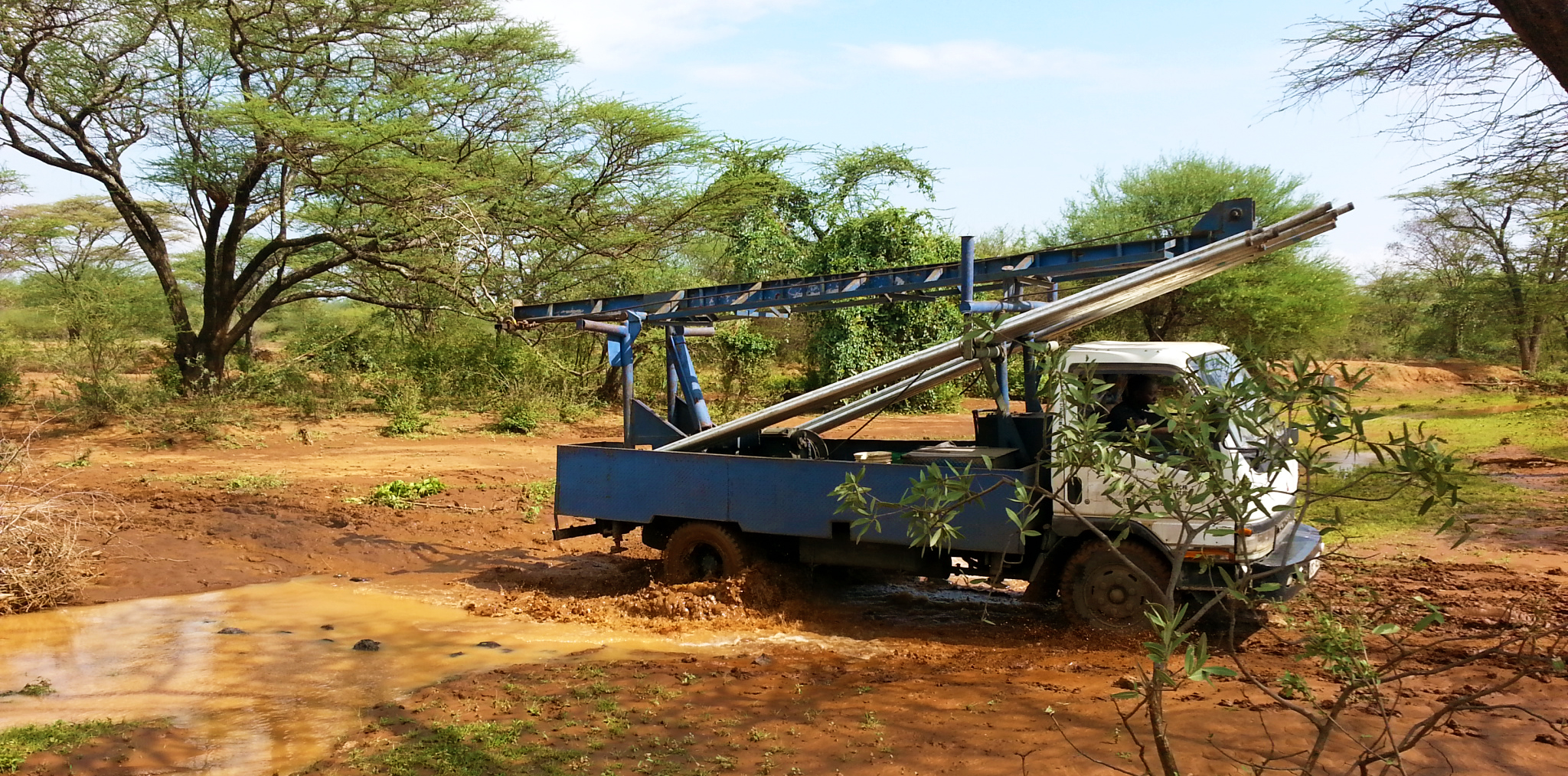 Once we identified a solution, we realized it was just the beginning of the undertaking to see safe water flowing at Mount Paka. Shipping and logistics proved to be a challenge as a pump built in Denmark needed to travel to one of the most remote regions of the world. Our logistics team arranged an air shipment to Kenya and our amazing Kenya staff helped to get the installation rig out to Mount Paka through flooded streams and muddy trails that barely qualified as roads.