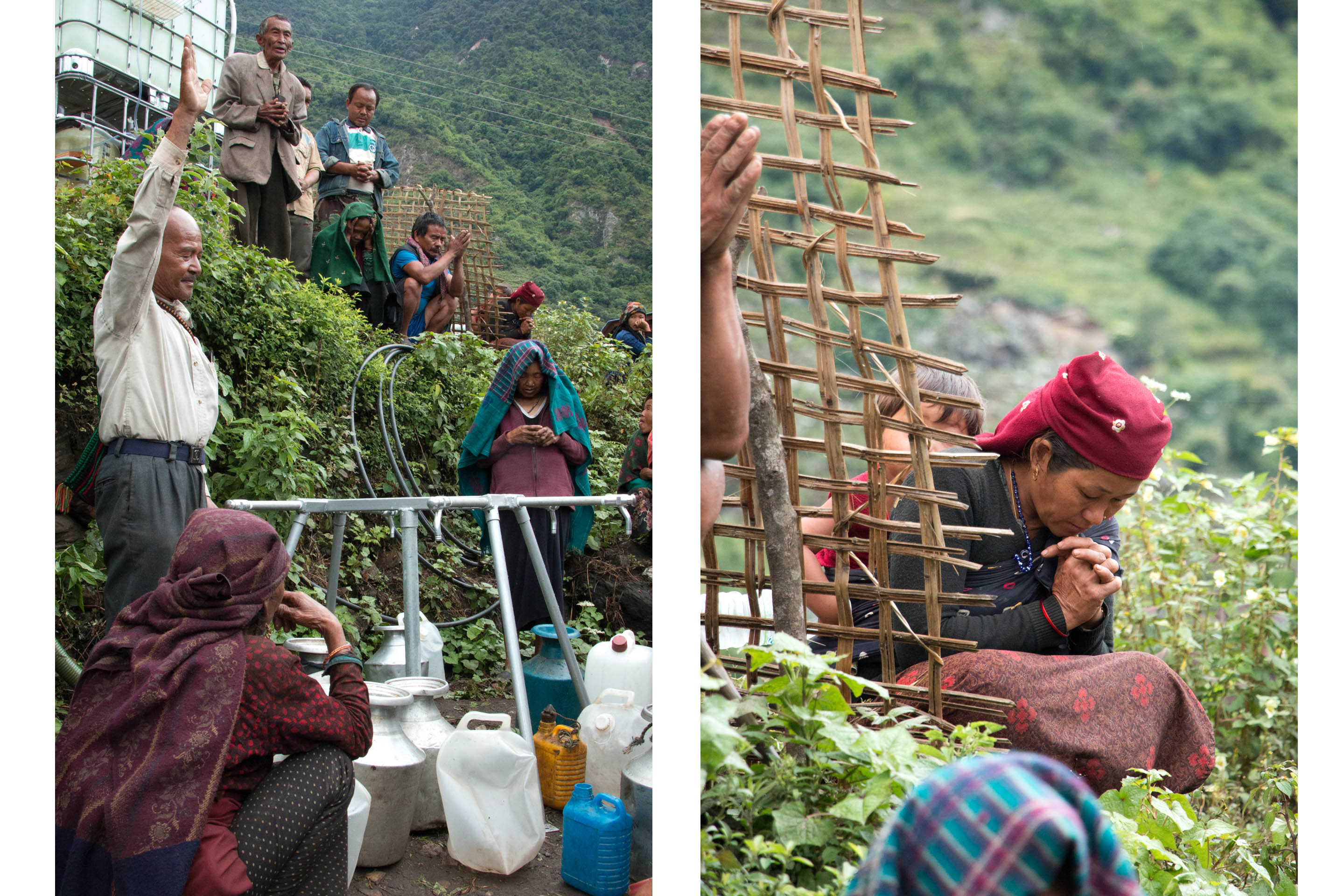 There was no break (other than the always welcome tea breaks) and we quickly set to work with installing our equipment. The time was ticking until we would get picked up whether we were finished or not, and with rain always threatening, we knew delays were possible. The community’s main water line had been damaged in a landslide resulting from the earthquake, causing most villagers to have to walk to a stream almost a kilometer away. By constructing a new pipeline and installing our treatment system, we brought abundantly available, safe water to the middle of the village. This rainy season Khorla doesn’t have to worry about the water-related diseases that usually arrive every year with the turbid runoff waters of the monsoon.