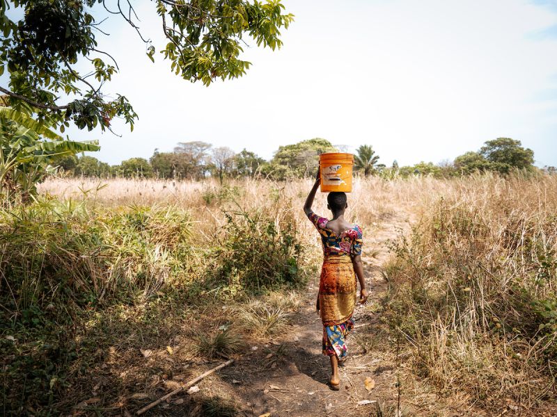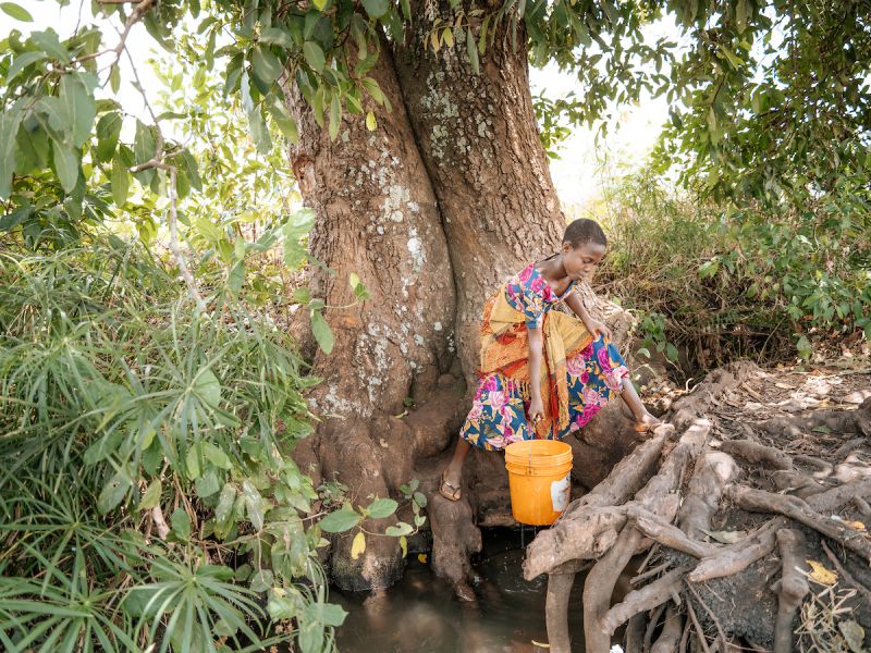 Each morning, Mwamini woke at 6 a.m. to trek one kilometer to a stream of stagnant, murky water. After waiting in line at her water source, Mwamini filled her bucket and carried it back to her family’s home. She repeated the journey several times, also gathering water for her school.