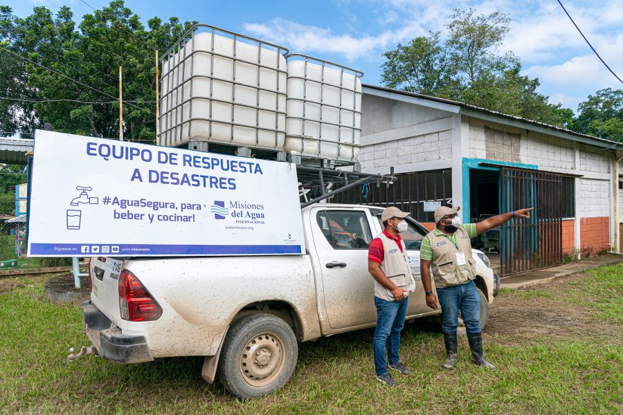 La Danta, Honduras, was a thriving community before Hurricanes Eta and Iota struck in November. More than 100 families benefited from a local school, neighborhood markets, and convenient access to safe water through a Water Mission Living Water Treatment System (LWTS). A nearby factory provided steady employment to many, including Melissa Flores, a 34-year-old mother of four.    Then, two Category 4 hurricanes swept through Central America just two weeks apart. They affected La Danta and more than 3 million people throughout Honduras. Across the country, homes were submerged and crops were ruined. An estimated 180,000 people were displaced. In La Danta, Melissa’s factory was damaged and she lost her job.    After staying with relatives for several weeks, waiting for conditions to improve, Melissa and her husband returned home with the children, ready to rebuild. They were especially eager to have access to safe water again.    “I want water [at home] more than electricity,” Melissa told us, as she and her children scraped mud out of the house. They were relieved to find their home still standing, but the 10-foot floodwaters left the walls, floor, and every belonging covered in a thick coat of mud.    After four days of cleaning, there was still much to be done. While her husband was at work, Melissa’s oldest sons shoveled the debris outside. Her daughter swept the floors. Melissa threw away damaged items as her seven-year-old son played in the mud nearby.      “Once we clean up here, we can make do with whatever we have,” she said, “but I want safe water for my family.”  Melissa's daughter helps sweep debris from the house.[/caption] Using real-time data provided by our remote monitoring technology, Water Mission engineers immediately determined which safe water systems were damaged by the hurricanes. Our Honduras staff traveled to 20 communities, including La Danta, to repair those systems and build enhanced protections from future storms and flooding. As residents returned to their communities, they at least had safe water.   With the prayers and generosity of friends like you, our team in Honduras has spent the last several months addressing the immediate and long-term needs of people affected by the hurricanes.  As soon as the wind and rains subsided, Water Mission brought safe water from our country office in Tocoa to emergency shelters and impacted communities. We then installed 24 new emergency safe water treatment systems in the hardest-hit places.    Water Mission staff strategize about safe water installation outside a temporary shelter.[/caption] Our team distributed more than 1 million easy-to-use water purification packets, donated by P&G, and more than 6,000 hygiene kits. These kits included essentials to help protect against COVID-19, such as face masks and hand sanitizer.   Now, as Melissa and her family look to the future, Water Mission is too. Our engineers are assessing the affected communities and identifying opportunities to install additional safe water treatment systems.   Our disaster relief initiatives are designed to provide long-term support and safe water solutions to affected communities, not just temporary aid. When you support Water Mission, you offer tangible hope to people in the immediate aftermath of a crisis and as they rebuild.