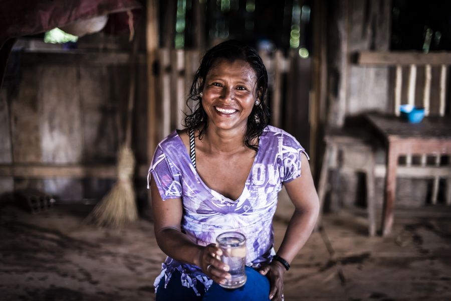 Jesenia, a mother of three in Peru, rejoices over the safe water and sanitation solutions that Water Mission installed in her community.