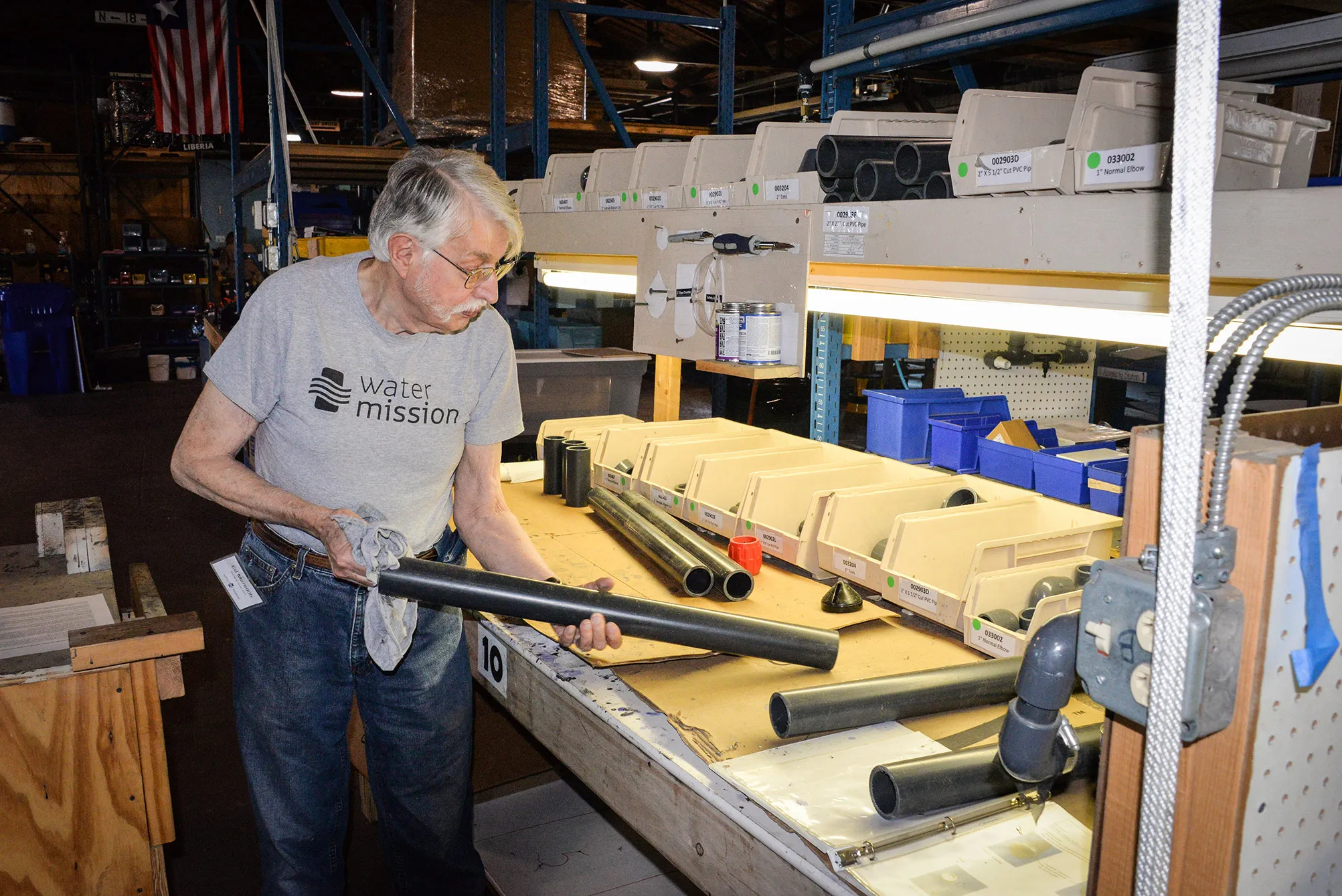 People who are blessed to know and work with volunteer veteran Ed Meredith agree that an incredible depth of experience, ingenuity, and faith reside behind his quiet demeanor. He volunteers at Water Mission’s headquarters every Wednesday as our resident expert in the assembly of chlorinators. His desire is simply to serve where God needs him.