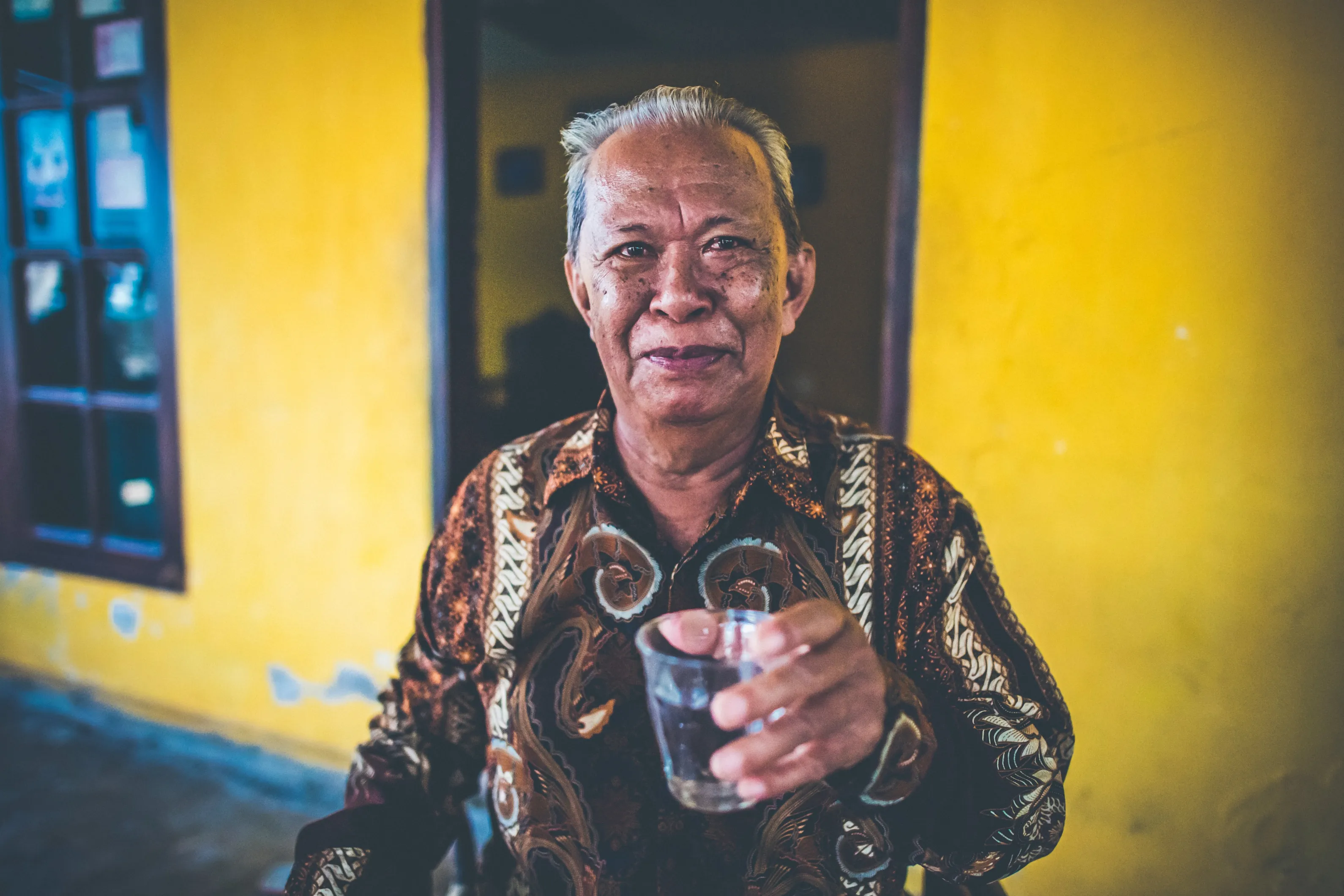 Andi and his wife rejoice while drinking safe water in Palu, Indonesia.[/caption]