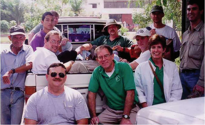 George and Molly Greene pictured center, responding to the need for safe water after Hurricane Mitch[/caption]