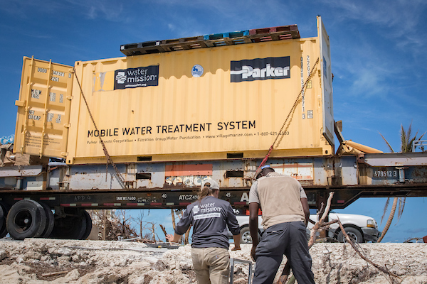 Like other leaders around the world, Prime Minister Hubert Minnis recently announced a shelter-in-place order in response to the coronavirus outbreak. He also called for prayers for those on the frontlines of the battle against COVID-19, including pharmacists, caregivers, store clerks, and utility workers. He appealed to the country not to lose hope. In proposing physical distancing and ordering total restriction on social activities, he said, “Hope has not been canceled… nor have resilience and courage and the spirit of the Bahamian people.” Resilience is a word with which the people of the Bahamas have become well acquainted. In September 2019, Hurricane Dorian devastated the Great Abaco and Grand Bahama islands, leaving a trail of destruction and economic uncertainty. A 20-foot storm surge, fueled by sustained 185 mph winds, caused flooding that resulted in saltwater contamination of most groundwater sources. The ensuing lack of safe water on the islands could have hampered immediate recovery. However, our disaster response team quickly mobilized and delivered a unique solution: reverse osmosis (RO), a specialized water purification process that filters saltwater before it is treated. The RO systems, designed by Parker Hannifin, that we installed produced enough safe water for thousands of people daily. To date, Water Mission has provided the Bahamas with more than 1 million gallons of safe water.