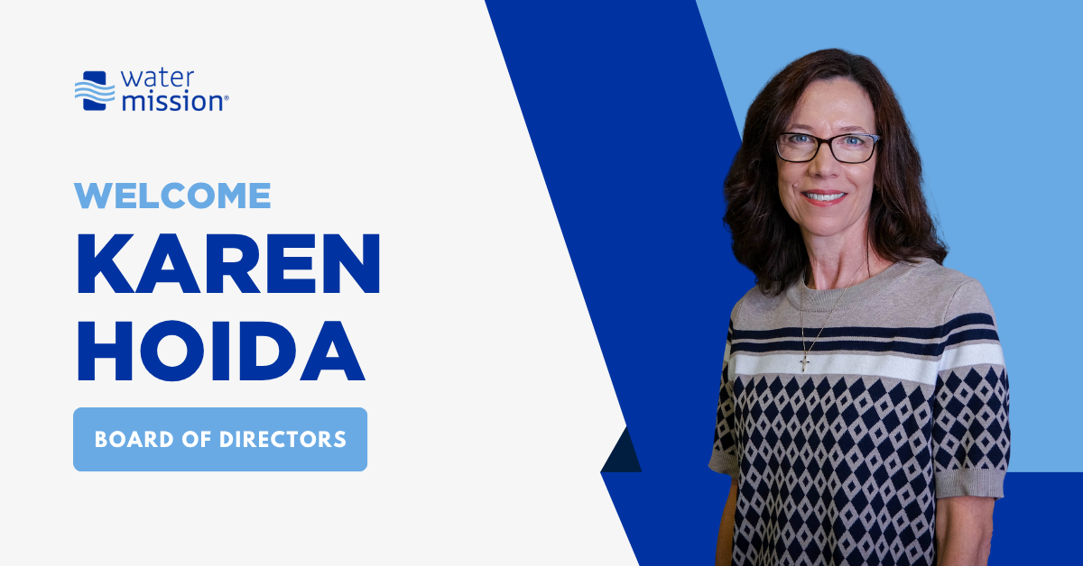 “We are thrilled to have Karen Hoida join our Board of Directors,” said Water Mission CEO and President George Greene IV, P.E. “First and foremost, Karen brings skills and experience to the Water Mission board that are invaluable. Secondly, I am excited for the potential to strengthen the partnership between Water Mission and Compassion International, with the ultimate goal of deepening our collective impact across our global operations.”